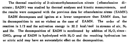 モノエタノールアミン硝酸エステル硝酸塩の熱分解