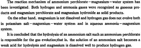 An investigation of ammonium perchlorate-magnesium-watersystem