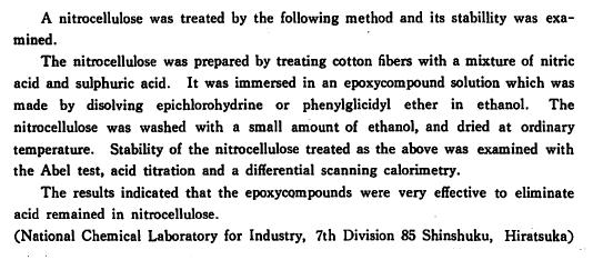 Stabilizing treatment of nitrocellulose with epoxycompound(*in Japanese)