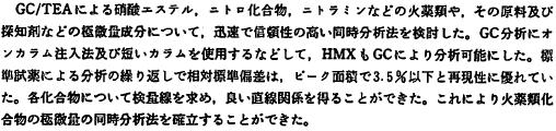 ガスクロマトグラフィー/有機窒素酸化物検出装置(GC/TEA)による極微量火薬類化合物